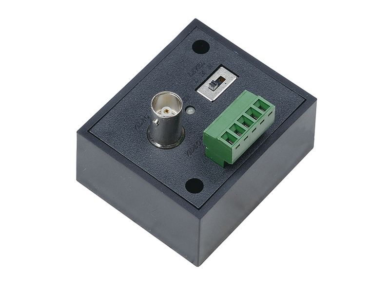 SC&T Videojel (AHD/HD-CVI/HD-TVI) átalakító adó, 1 csatornás aktív koax-UTP csavart érpáras analóg HD, BNC és sorkapcsos csatlakozókkal, átviteli távolság: 500m (720P), 300m (1080P), max. 11dB erősítés, 12Vdc, 230Vac adapterrel