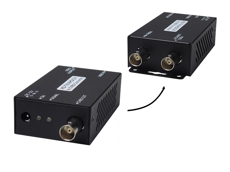 SC&T Videojel átalakító CVBS-re, AHD/HD-TVI/HD-CVI video bemenet, áthurkolt AHD/HD-TVI/HD-CVI vagy átalakított CVBS kimenet, DIP kapcsolóval, támogatott AHD/HD-TVI felbontások: 720P(25/30Hz) / 720P(50/60Hz / 1080P(25/30Hz), 12Vdc (350mA), 230Vac adapterrel