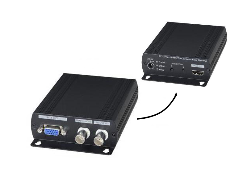 SC&T Videojel VGA/HDMI átalakító, BNC (AHD/HD-TVI/HD-CVI/CVBS) video bemenet, áthurkolt AHD/HD-TVI/HD-CVI vagy átalakított CVBS kimenet, VGA/HDMI kimenet, 2 csatornás AHD switcher funkció, támogatott HDMI/VGA felbontások: 480P/576P/720P/1080i/1080P, támogatott frekvencia: 50/60/Hz, támogatott AHD/HD-TVI/HD-CVI felbontások: 720P(25/30Hz)/720P(50/60Hz)/1080P(25/30Hz), 12Vdc (500mA), 230Vac adapterrel